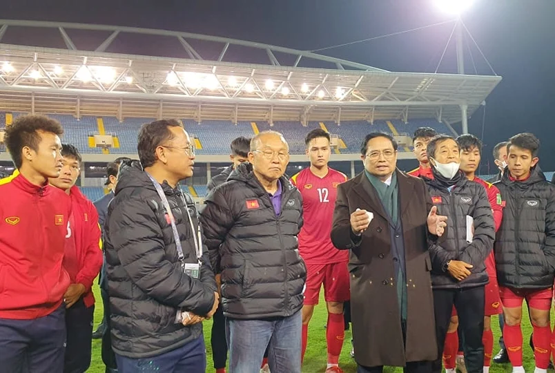 Sau trận đấu, Thủ tướng Chính phủ Phạm Minh Chính đã xuống sân và có những lời ngợi khen cho màn trình diễn ấn tượng của thầy trò HLV Park Hang Seo trước ĐT Trung Quốc.